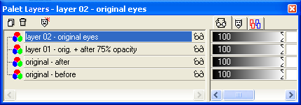 The most important in a human face, so here we start. Used: the original eyes (brown, not blue as the first attempt).