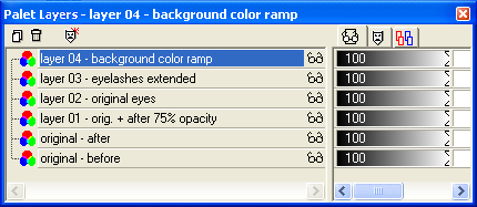 To get the general mood of the portrait, now a background color is added. Used: light blue (connection with the eye shadow), but cooler kind of blue; painted with lineair fading (some darker at the top).