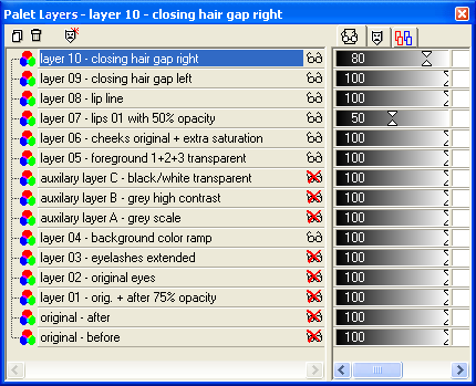 Just aside of the neck another part of the background is heavily shining through. Also over here copy/pasted and rotated some other parts of the hair to fill the gap.