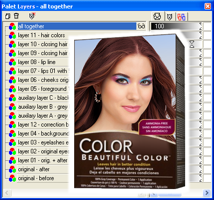 Now all layers above the background can be turned on to see the result. Copied together and pasted in a new layer.